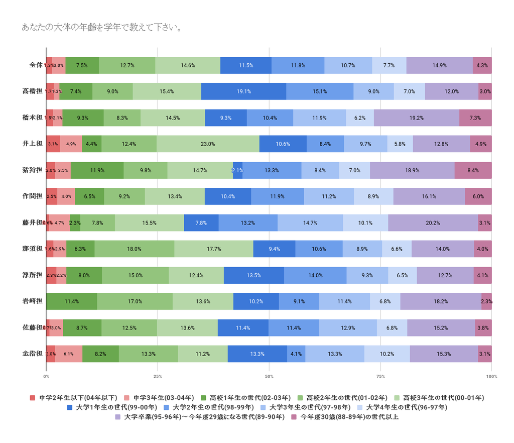 で、こう見ると直樹くんが圧倒的に大学生以上の割合が高いんですよね!個人的には一世くんかなぁと思ってたので意外でした。で、大学卒業以上と30代以上の割合が高いのは今年も猪狩くんでしたね!これは去年と一緒ですね!
